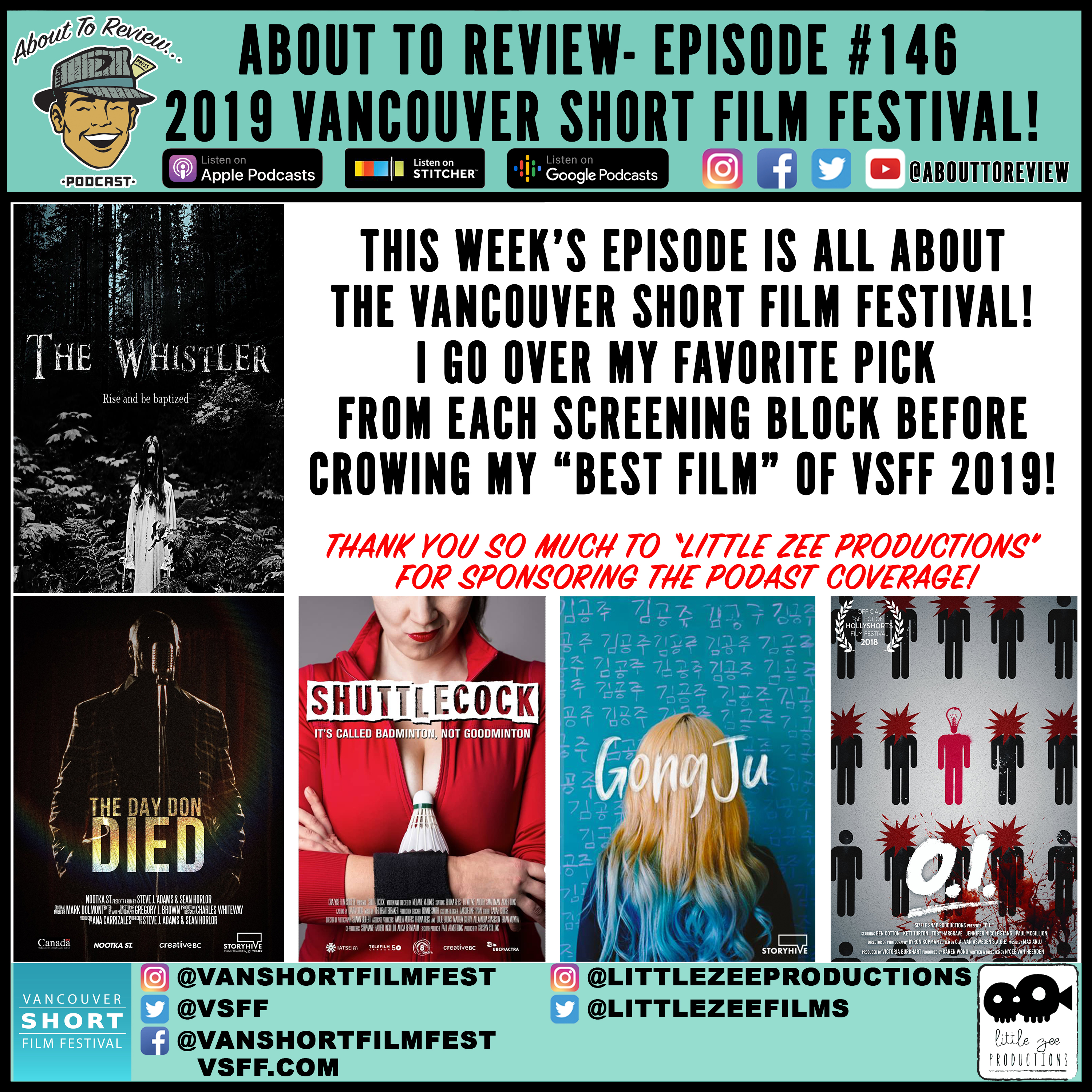 Thank you again to Little Zee Productions, and the entire staff and volunteers from VSFF: Marena, Zlatina, Kristin, Nicolas, Emily, Avi, Frances, and to the filmmakers who made time to speak with me. - 31m:00s - 32m:40s: Social media and upcoming projects: